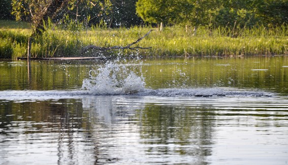 På kvällen brukar vinden stanna upp och vattnet blir stilla. Kvällsdimman dansar i slöjor över vattnet, över fälten och in bland träden. En symfoni hörs av fågelsång, trumpetrop från tranor, men … sedan rasslar det till i vassen…