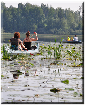 Paddlingen nedströms i maklig takt och med tre olika långa alternativ att välja på är givetvis resans höjdpunkt. Det kortaste alternativet på runt en mil tar högst tre timmar att paddla, medan den som vill färdas längre kan välja en startpunkt som ligger dubbelt så långt uppströms om Edens Garden. På våren möts man av spirande grönska, sprudlande fågelsång och tillfällen att spana in både havsörn och svarttärna och kanske även lyssna till kornknarrens kvällskonsert på försommaren. Sommarens paddeltur kan med fördel kombineras med bad och en lagom lång avkopplande paus vid Ebba Brahes paviljong mitt i Fläcksjön eller på andra lämpliga rastplatser. Sedan med hösten kommer tranorna på väg söderut, klar och frisk luft från norr, sprakande färger och möjligheten att kombinera med en tur i svamp- och bärskogen.