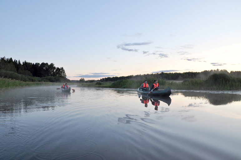 Det är något speciellt med våra fina svenska sommarkvällar. Följ med oss på en kvällstur med kanot i vackra Svartådalen så kommer ni förstå vad vi menar. På kvällen brukar vädret bli lugnt och vattnet stilla. Svartådalen är berömt för sitt rika fågelliv och när vi sakta paddlar genom det vackra landskapet hör vi den vackra fågelsången.