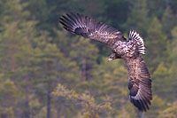 Här på mossen i den Västmanländska storskogen landar både kungsörn och havsörn, ofta flera stycken samtidigt. Det bjuds förstklassiga fotomöjligheter från mycket nära håll. Fyra sittplatser (torrakor/ martallar) finns utplacerade på mellan 20 och 30 meters avstånd från gömslet. Vi matar örnarna med vilt och fisk för naturligast möjliga bilder.